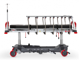 • Оснащен боковыми рейками с вертикальным подъемом и опусканием. Длина боковых опор составляет 2/3 общей длины рамы. Боковые опоры расположены так, чтобы голова пациента оставалась открытой от боковых опор (ближе к ногам). Боковые опоры, опущенные под матрас, обеспечивают неограниченный доступ к пациенту.