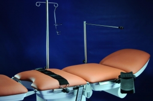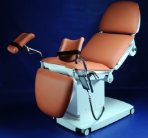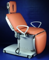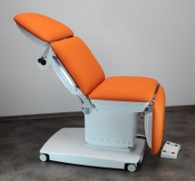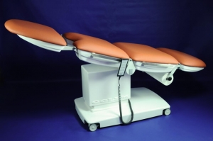 Ширина рабочей поверхности 620 мм., покрытая искусственной бесшовной кожей в черном цвете; она делится на сегмент ног, сиденья и спинку с сегментом головы. Управление всеми электроприводам осуществляется ручным пультом, а позиции можно изменять, даже если стол полностью загружен. Данная версия имеет: держатель бумажного рулона под головой, колеса Ø75mm с тормозами, гинекологическое отверстие, ЕВРОрейки вокруг сегмента таза (пара), ЕВРОрейки вокруг сегменты спины (пара), подлок8282отник для инфузии 2шт, ремень крепления.