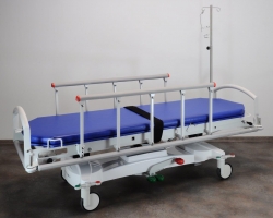 Транспортировка больных, ургентная процедура, рентген - стретчер можно использовать для всего этого. Высококачественные колеса Ø 150 мм с двумя центральными тормозами; ведущие колеса для облегчения прямолинейного движения. Съемный матрас 630 x 1965 мм, спинной сегмент регулируется вручную с помощью газовой пружины от 0 ° до + 75 °. Внешние размеры 760 x 2070 мм. Рентгенпроззрачный по всей длине; имеющийся отсек для размещения кассеты. Можно использовать C-арку, кроме краев.