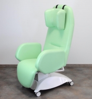 Сиденья с легким наклоном назад имеет высоту 550 мм, что является оптимальным для вставания и усаживания; спинка включает мягкую поддержку для головы - подголовник в форме крыла. Наклон спинки и сегмента ног легко меняется с помощью газовой пружины - это может делать сам пациент.