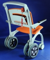 Конструкция складывающегося стула, эффективно решает перемещения людей с особыми потребностями не только в больницах, но и в аэропортах, стадионах, торговых центрах и культурных объектах. Благодаря уникальному дизайну каждая дополнительная тележка при составлении "один в один" занимает лишь 38% предыдущего. Тележку можно оборудовать монетным механизмом для отсоединения друг от друга. Это обеспечивает процесс возвращения тележек обратно в стойку. На стойке предусмотрено информационную табличку. Комфортное мягкое сиденье с небольшим наклоном назад, спинка эргономичной формы, размера и высоты для максимального комфорта пациента и удобного использования. Несмотря на компактность тележки, он устойчив, человек которого перевозят чувствует себя комфортно.