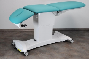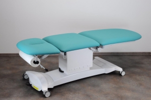Стол GOLEM 3 EXCLUSIV оптимальный для реабилитации и манипуляций. Полное покрытие нижней рамы и подъемного механизма пластиковыми моющимися накладками, обеспечивает безопасную эксплуатацию и очень простое обслуживание стола. Трехсегментная рабочая поверхность без лицевого отверстия размером 630 × 1950 мм покрыта искусственной кожей в цвете по вашему выбору. Электропривод управляется кнопками, расположенными под поверхностью стола с обеих сторон; позиция может быть изменена, даже если стол полностью загружен.